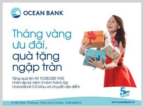 (VTC News) - Hàng ngàn ưu đãi hấp dẫn từ OceanBank Cà Mau nhân dịp kỷ niệm tròn 5 tuổi và chuyển đến địa điểm mới.