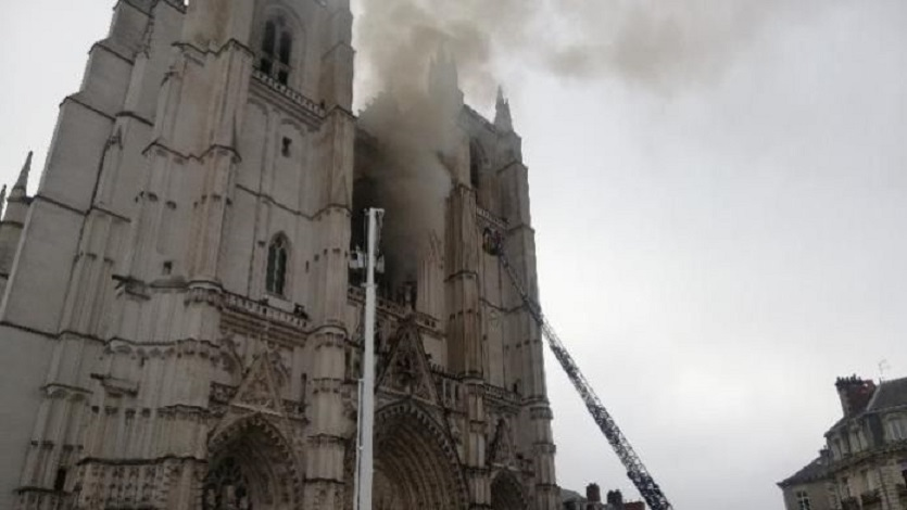 Vụ cháy tại thánh đường Saint Pierre et Saint Paul, tại thành phố Nates, xảy ra vàu khoảng 8h ngày 18/7. (Ảnh: Times24)