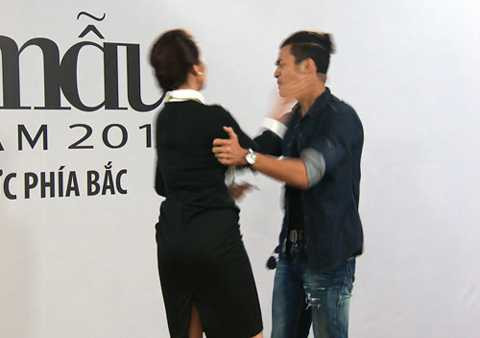 Trong vai anh chàng người yêu phản bội của siêu mẫu Thanh Hằng, thí sinh Tuấn Việt đã mạnh bạo xông vào ôm lấy nữ giám khảo xinh đẹp, nói lời xin lỗi nhưng đã không được cô chấp nhận.