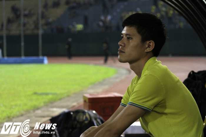 | Thanh Hào bị sốc ngay sau pha vào bóng với Abass (Ảnh: Hoàng Tùng) |