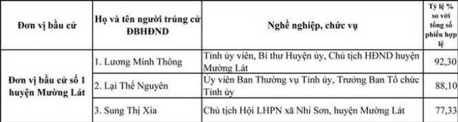 Đối với đại biểu HĐND cấp huyện, thị xã, TP cử tri đã bầu được 993 đại biểu trên tổng số 999 đại biểu được ấn định (thiếu 6 đại biểu). Đối với đại biểu HĐND cấp xã, phường, thị trấn cử tri đã bầu được 16.031 đại biểu trên tổng số 16.439 đại biểu đã ấn định (thiếu 408 đại biểu).