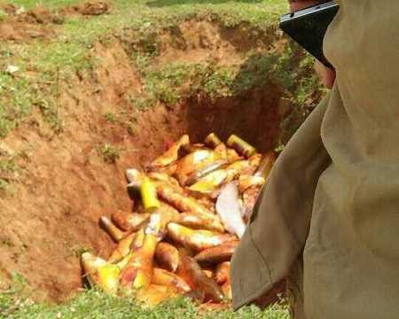 Khi PV có mặt tại hiện trường thì thấy, cá chết đang được phun hoá chất và đem chôn tại nghĩa trang cách khi vực cá chết khoảng 2km.