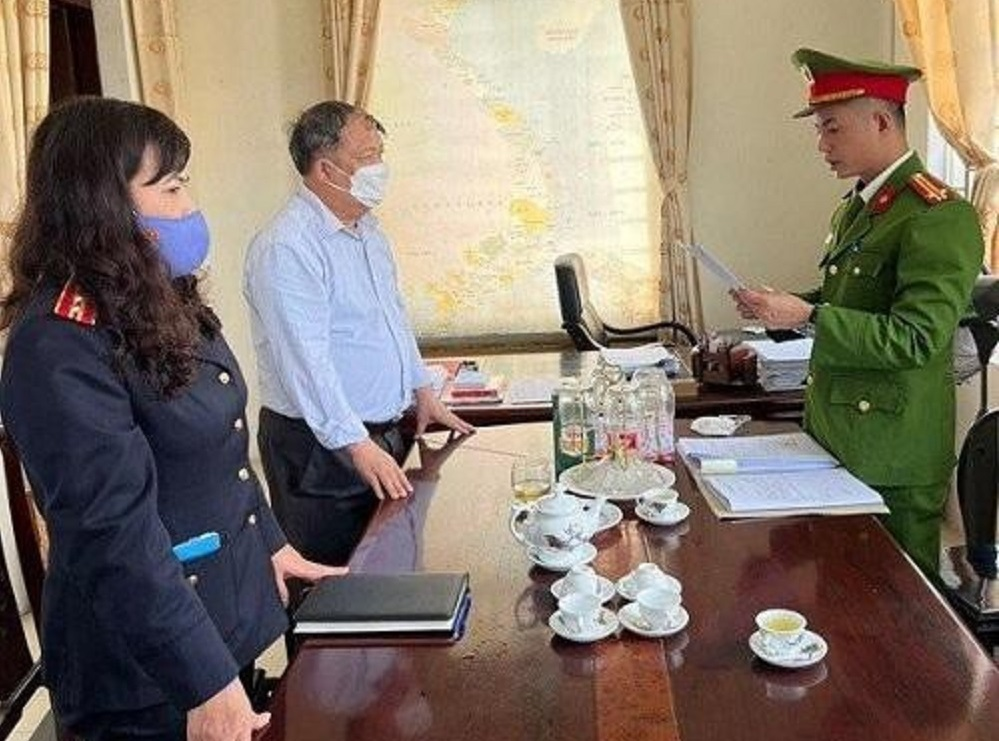 Cơ quan công an thực hiện lệnh khởi tố, cấm đi khỏi nơi cư trú đối với ông Hà Duyên Lục.