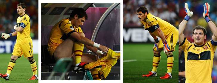Trước khi loạt “đấu súng” diễn ra, thủ thành Casillas đã chạy về khu vực vòm cabi huấn luyện, mau lẹ thay đổi chiếc quần đấu của mình trước khi trở lại sân cùng các trọng tài làm thủ tục cho loại đá 11m.