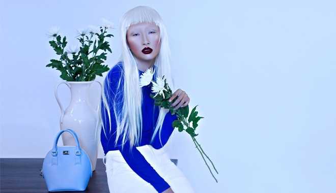 | Tông màu chủ đạo của bộ hình là trắng và xanh dương đã tạo nên sự hài hoà, cân bằng giữa tính ma mị đáng sợ của gương mặt với sắc màu thanh bình, tinh khôi của trang phục. |