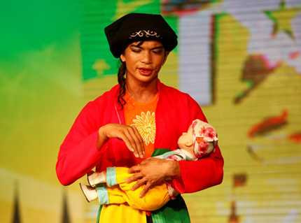 Dù đã nhận 3 dấu X và bất chấp những lời phản đối từ khán giả, thí sinh giả gái này vẫn diễn không ngừng chỉ với hành động ru con và khâu quần cho chồng. Thí sinh cũng có màn đối đáp tỏ vẻ rất mê Thành Lộc.