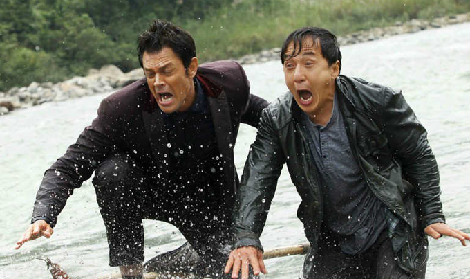 | Thành Long và Johnny Knoxville giữa dòng nước xoáy. |