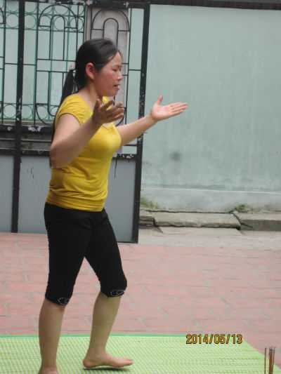 Bên trong gian nhà, vài chục người đang chen chúc ngồi nhưng tuyệt nhiên im lặng, không một tiếng động, chỉ duy một người phụ nữ trạc 40 tuổi là đang ngồi gật gù, nửa hát, nửa đọc thơ. Trước khi bước đến thỉnh cầu và lấy phiếu chữa bệnh, chúng tôi được dặn dò phải gọi người phụ nữ đó bằng “mẫu” và xưng “con”. Trong đám khách, từ đứa trẻ ba tuổi đến cụ già 80, tất cả mọi người đều phải xưng hô như vậy.