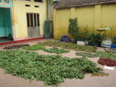 Đóng vai những người hiếm muộn, chúng tôi tìm đến nhà bà Hưởng để ghi nhận thủ đoạn bịp bợm của đối tượng này. Bước đến cổng, đập vào mắt khách là cảnh tượng các loại rau củ quả được phơi la liệt trước sân, bên cạnh những chiếc nồi khổng lồ đang đun nấu nghi ngút khói.