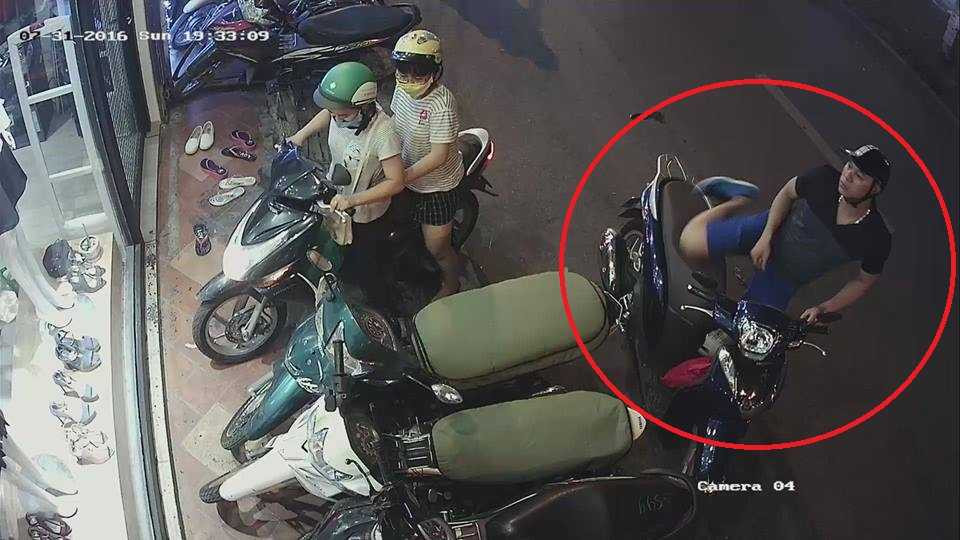 Sự việc do camera an ninh ghi lại vào khoảng 19h30' ngày 31/7 trước một cửa hàng trên phố Triệu Việt Vương (Hà Nội).
