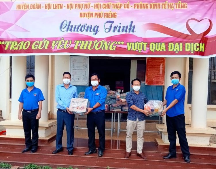 Trước đó, với sự hỗ trợ vận chuyển hàng hóa của đội phản ứng nhanh Sao Nhân Ái, Tỉnh Đoàn Bình Phước cùng Tập đoàn Kavi Group (TP.HCM), Công ty TNHH Bất động sản Kiên Cường Phát (TP Đồng Xoài) đã trao 420 suất quà (450.000 đồng/suất) cho các tuyến đầu chống dịch và người dân có hoàn cảnh khó khăn ở các huyện Lộc Ninh, Phú Riềng, Chơn Thành và TP Đồng Xoài cùng 20 chiến sĩ thuộc Tiểu đoàn 208, Trung đoàn 736 (Bộ Chỉ huy quân sự tỉnh Bình Phước); thăm tặng quà gia đình anh Nguyễn Duy Hảo ngụ tại phường Tiến Thành (TP Đồng Xoài) hiện gặp khó khăn trong thời gian giãn cách xã hội.
