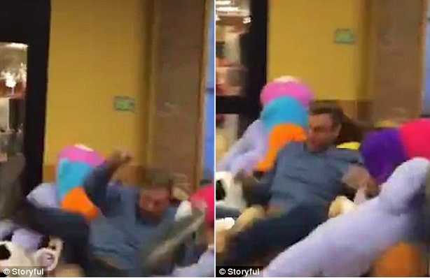 Sự việc xảy ra trong một siêu thị ở Mỹ. Chàng trai thích thú nhảy vào đám thú nhồi bông trong khi cô bạn gái cầm điện thoại quay phim.