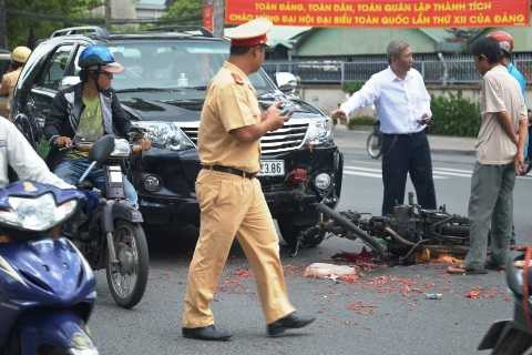 Khi đến trước Học viện Hành Chính Quốc Gia (quận 10) thì xe máy vượt trái sang làn đối diện, không làm chủ tốc độ, nam thanh niên mất lái đâm thẳng vào ô tô 7 chỗ hiệu Fortuner mang BKS 50LD – 023.86 do tài xế Phạm Trọng Đức điều khiển đang chạy tới.