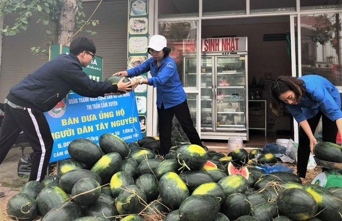 Chiều 4/2, trả lời VTC News, anh Lê Thành Luân, Bí thư huyện Đoàn Cẩm Xuyên, tỉnh Hà Tĩnh cho biết, Đoàn thanh niên thị trấn Cẩm Xuyên tổ chức thu mua dưa hấu số lượng lớn của người dân Tây Nguyên về bán.
