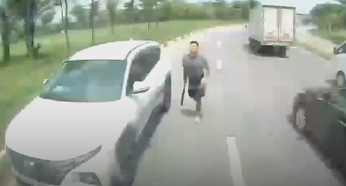 Thanh niên lái ô tô ngược chiều, ‘hổ báo’ đe dọa tài xế xe tải