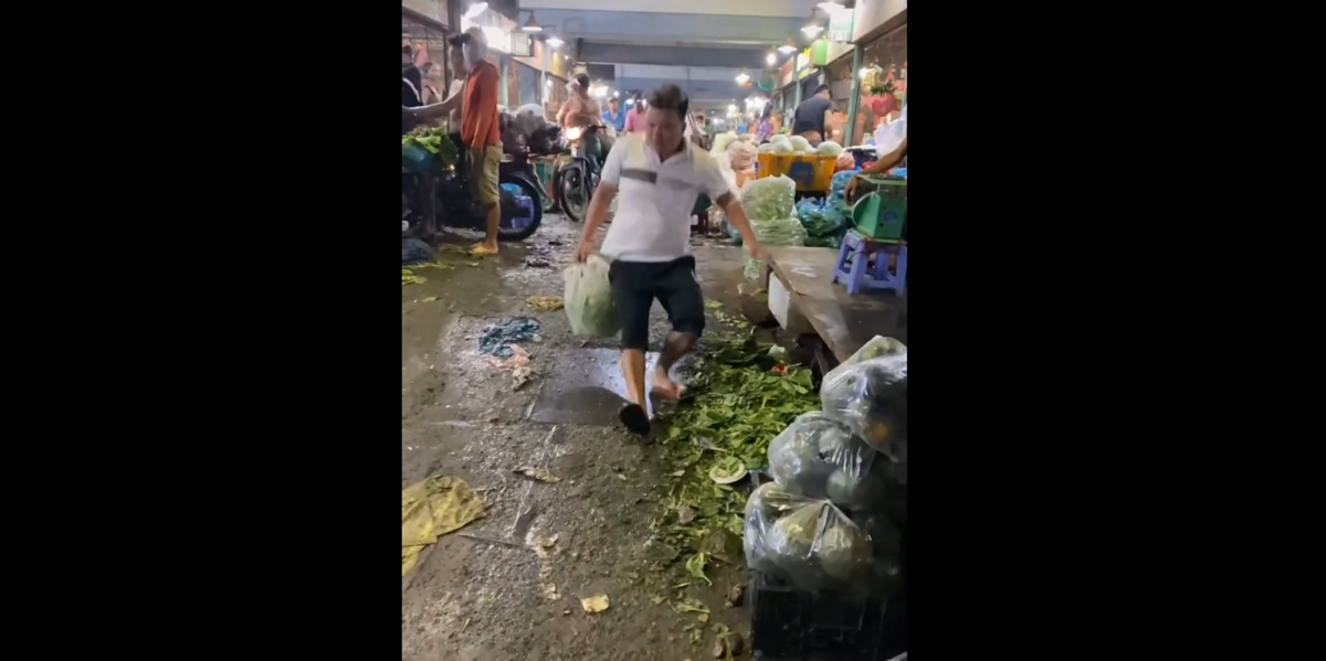 Thanh niên ngã dập 'bàn toạ' khi đi chợ