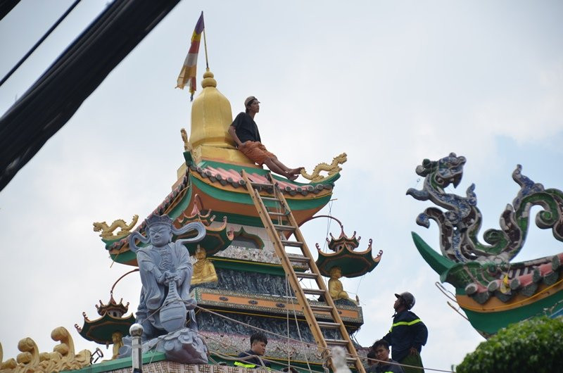 Bất chấp sự thuyết phục từ nhà chùa và lực lượng chức năng, Hoài vẫn cố thủ trên nóc chùa từ 3h đến 13h ngày 15/11. Sau đó, lực lượng chức năng đã phải tiếp cận, khống chế để đưa đối tượng xuống mặt đất. Tuy nhiên, lúc này, Hoài vẫn có biểu hiện mơ màng, chưa tỉnh táo.
