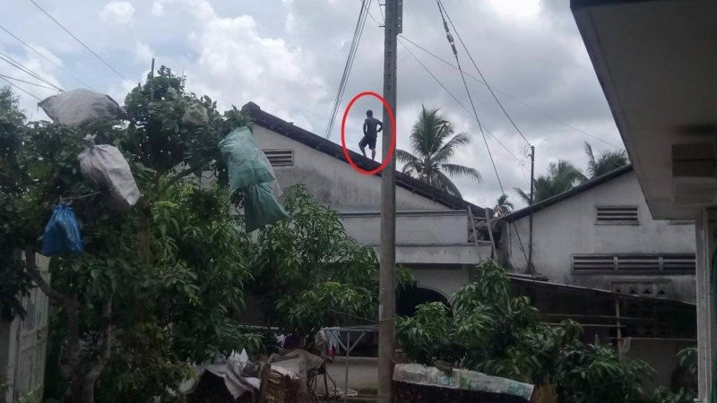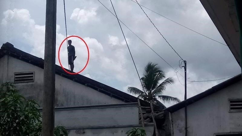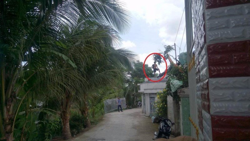 Bà T. cho biết người này có biểu hiện rất lạ khi thấy đèn xe là núp và trốn đi. Đến 4h ngày 11/8, một người dân trong ấp đi chợ thì phát hiện thanh niên lạ mặt nói trên trèo và ngồi vất vưởng trên nóc nhà của một hộ dân. Thông tin này được trình báo đến cơ quan chức năng và công an.