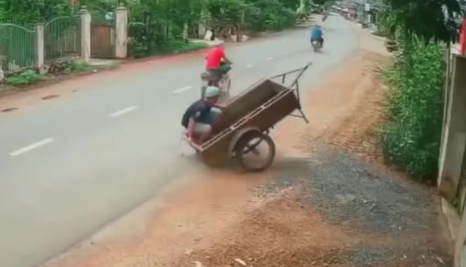 Thanh niên ngồi xe kéo ngã vào bụi cây