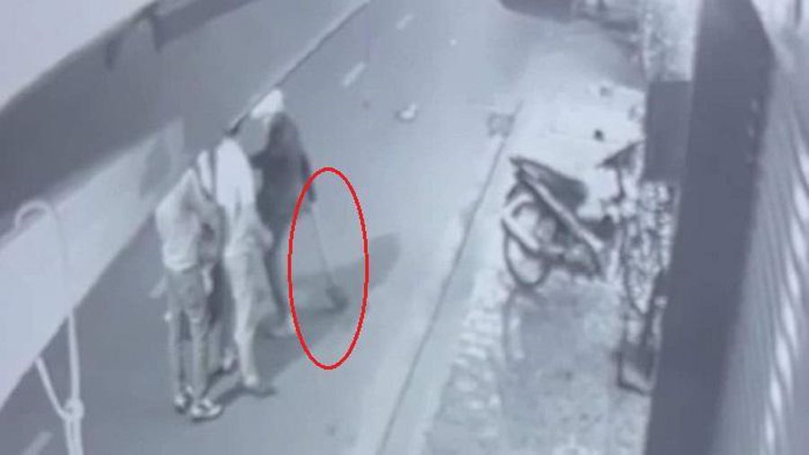 Trong lúc nói chuyện, 1 người trong nhóm 3 thanh niên cầm xẻng lao vào đánh người phụ nữ đi trên xe màu trắng. Sau khi người phụ nữ này ngã xuống, nam thanh niên vẫn hùng hổ đạp vào người chị này.