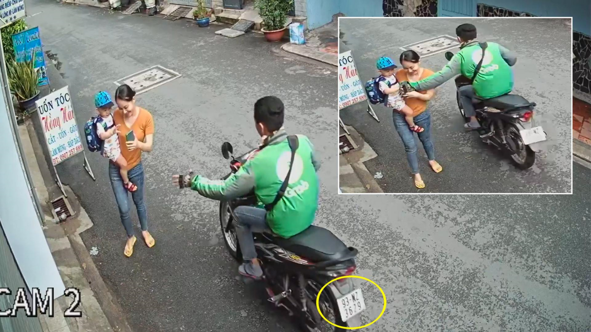Một người phụ nữ bế bé trai đi bộ trong 1 hẻm ở đường Phan Huy Ích (phường 15, quận Tân Bình, TP.HCM), bất ngờ bị nam thanh niên đi xe máy lao tới giật điện thoại.
