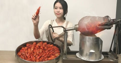 Video: Cô gái nướng tôm bằng máy nổ bỏng