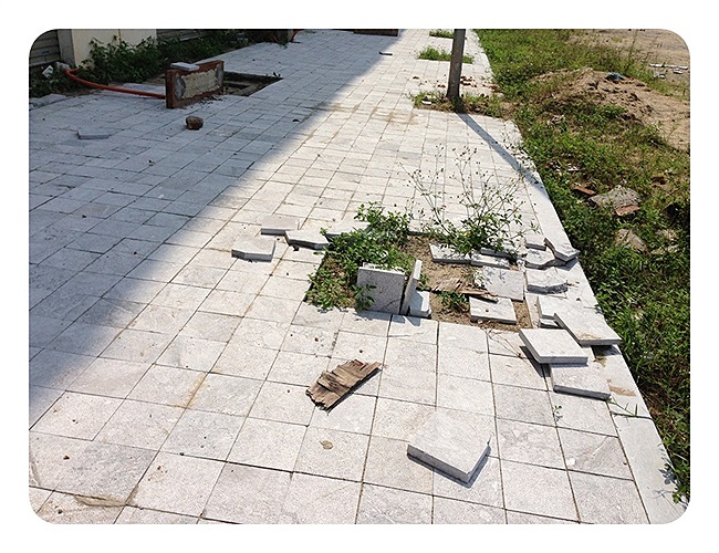 Sân gạch trước cửa biệt thự bị bong gạch