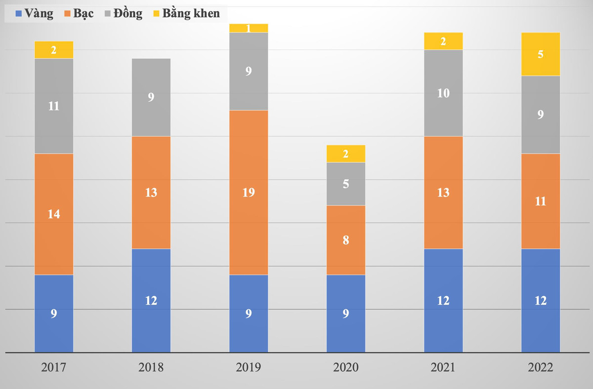 | Cuộc thi | Vàng | Bạc | Đồng | Bằng khen |