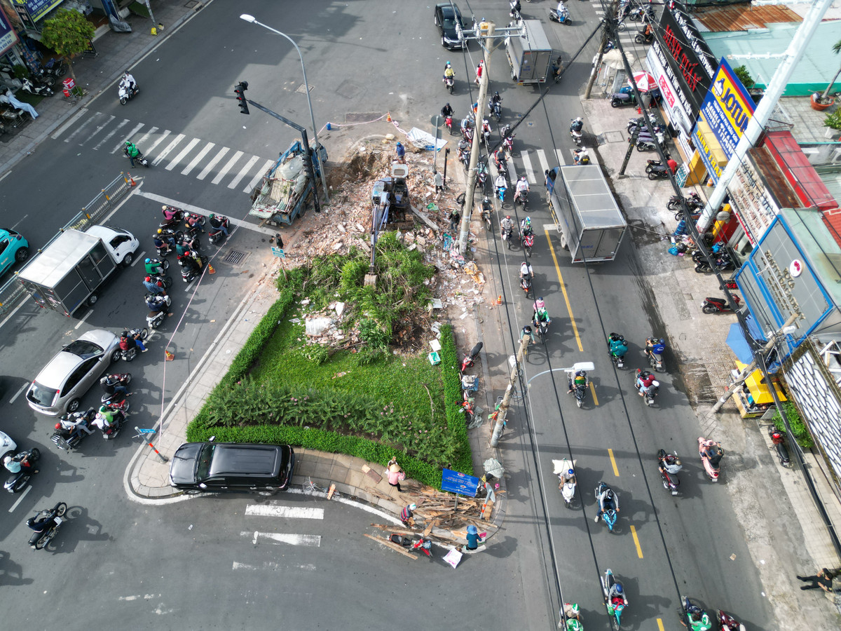 Tháo dỡ căn nhà 4 mặt tiền nằm giữa giao lộ TP.HCM suốt 10 năm.