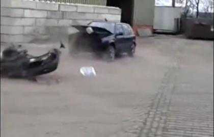 (VTC News) - Máy bị giật tung ra khỏi đầu sau khi chiếc xe lùi một đoạn.