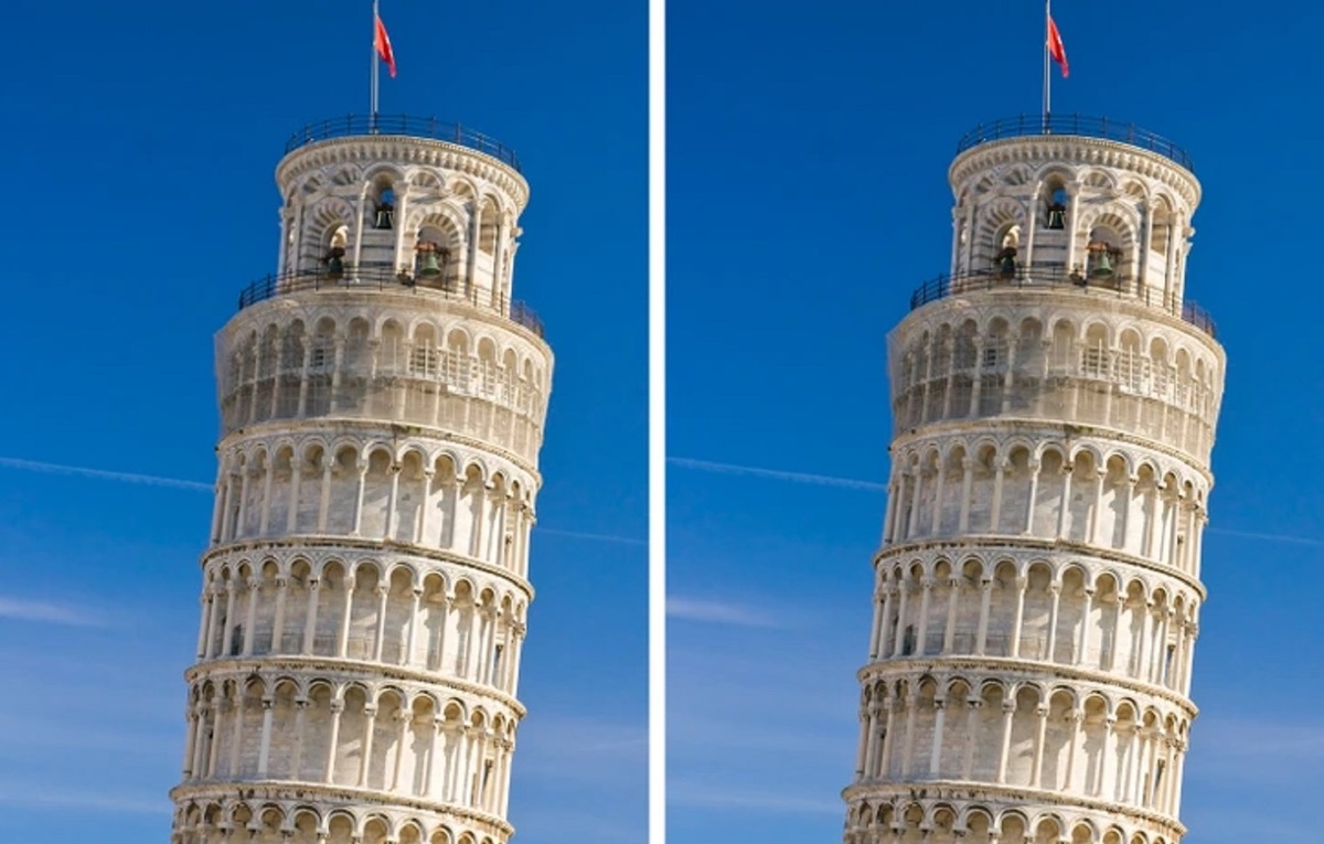 Bạn đoán tháp bên trái hay bên phải nghiêng nhiều hơn?