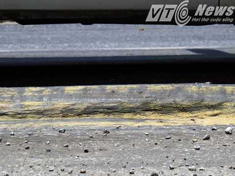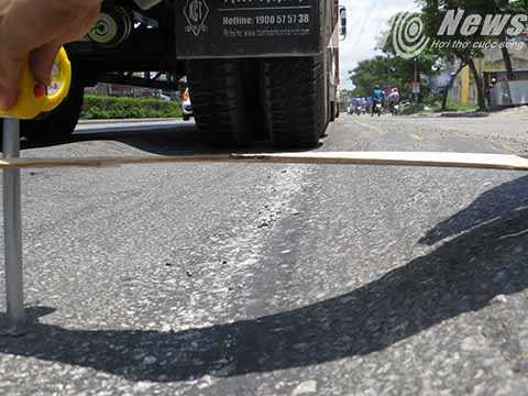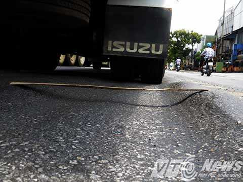 Những vết lún có độ cao từ 4-12cm, chủ yếu nằm ở 2 làn dành cho xe ô tô và phần giáp ranh với làn đường dành cho xe mô tô.
