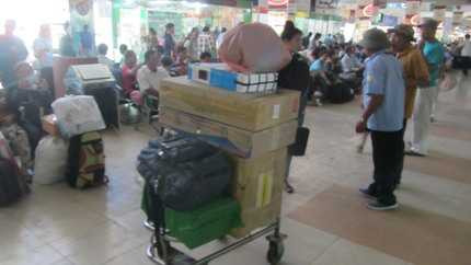 Tay xách, nách mang, đồ đạc lỉnh kỉnh, hay thậm chí là toàn bộ những vật dụng thiết yếu như ti vi, radio, lò vi sóng….Họ cũng mang về quê hết tất cả. Các món quà tết mang về quê nhà của họ hầu như rất ít thấy, hoặc nếu có thì cũng rất hẩm hiu.