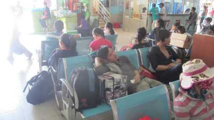 Tranh thủ chợp mắt với những giấc ngủ ngắn ngủi trước khi lên xe về quê ăn tết sớm (ảnh: N.D)