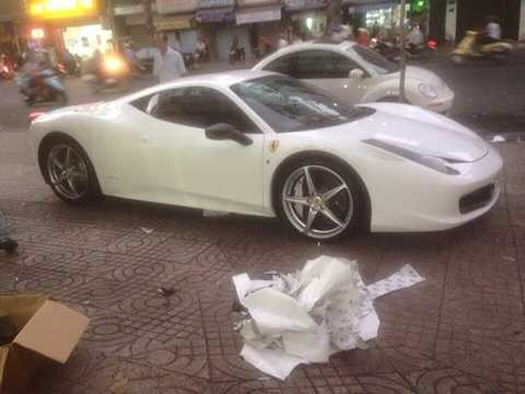 Sau 1 tháng nằm chờ khách tại công ty tư nhân ở quận 5, Tp. HCM, chiếc Ferrari 458 Italia màu đỏ tươi từng thuộc bộ sưu tập siêu xe "khủng" của thiếu gia Phan Thành đã tìm thấy chủ nhân mới. Ngay trong ngày bàn giao sang tay chủ mới, "siêu ngựa" đã được thay đổi bộ áo sang màu trắng muốt bằng đề-can trên vỉa hè tại Sài Gòn.
