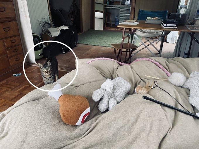 Sức khỏe khá hơn hút, Shuo thấy mèo cưng tha rất nhiều đồ chơi của nó đến chân giường. Lúc đầu cô nghĩ mèo cưng đang muốn chơi với mình thế nhưng Sakura Taro lại không chịu chơi.