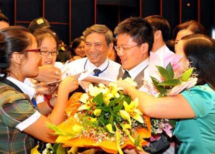 Thầy cũng chia sẻ những tâm niệm của thầy về bồi dưỡng học sinh giỏi: "Không phải là cho các em uống mà phải làm cho các em khát !".