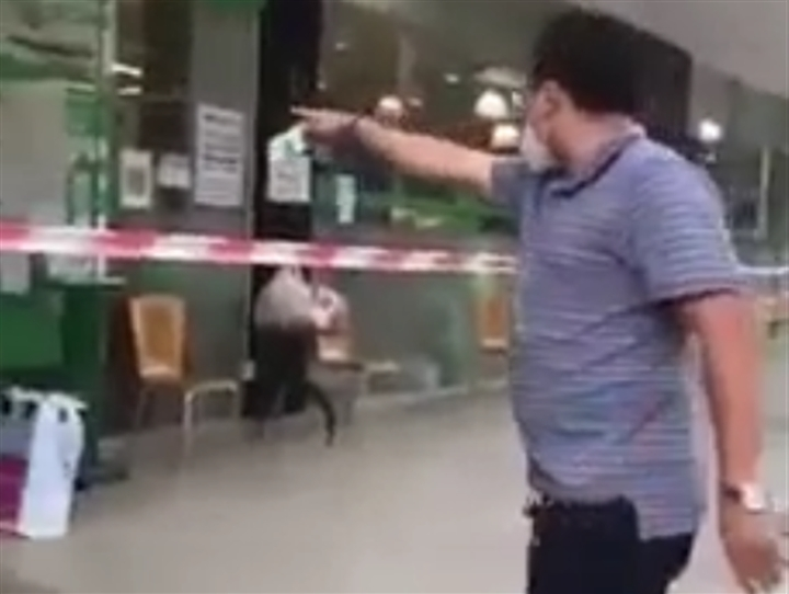 Bất chấp sự ngăn cản của bảo vệ và nhân viên siêu thị, ông Nhân tiếp tục vượt qua dây phong toả của siêu thị rồi đi vào trong và tiếp tục lớn tiếng doạ nạt.
