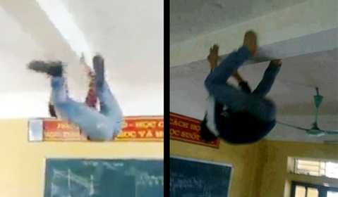 | Hình ảnh này khiến nhiều người nhớ đến bức ảnh “người nhện trong lớp học” được đăng tải cách đây vài hôm |
