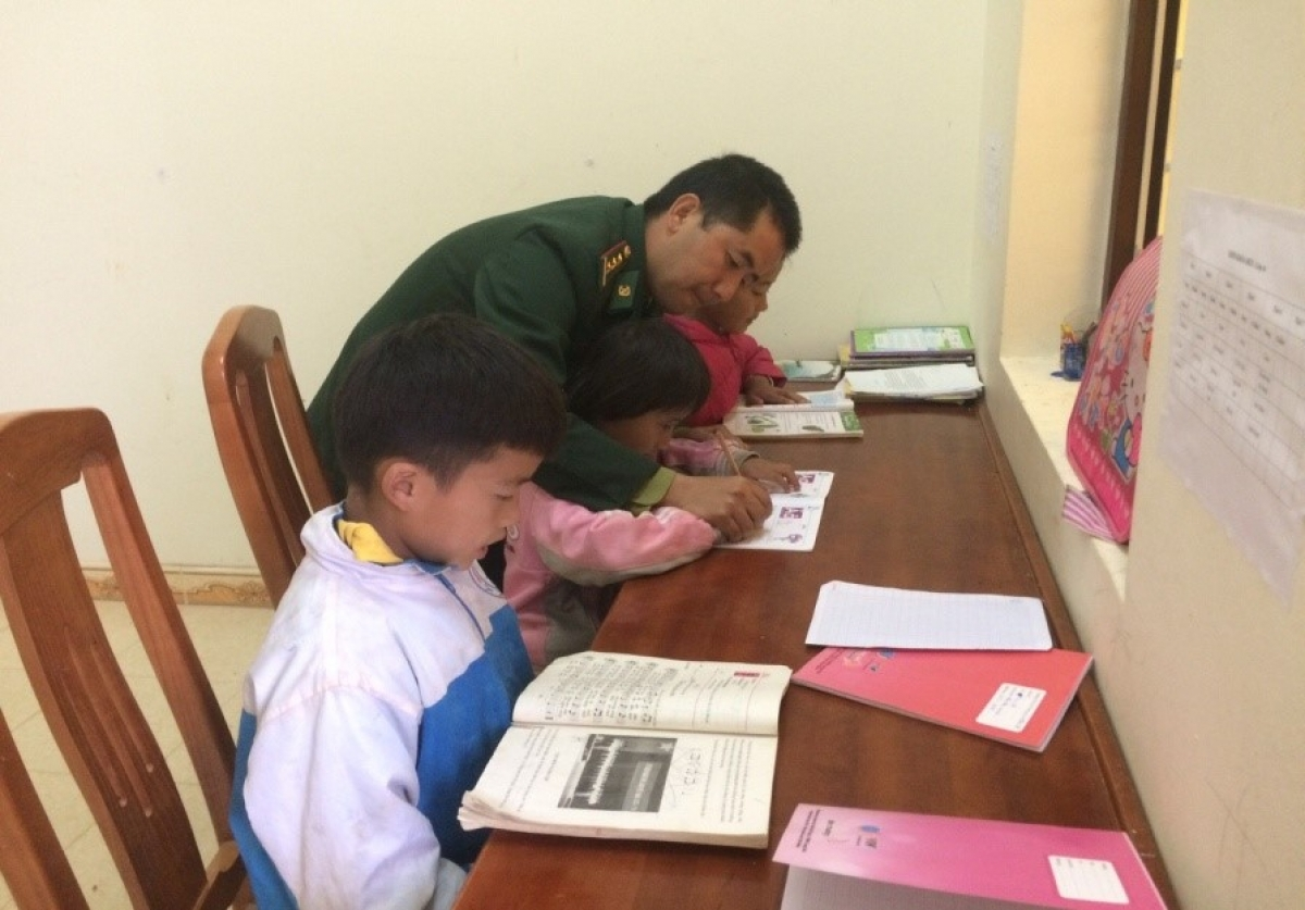 Từ nhiều năm nay, những đứa trẻ ở xã Lũng Cú, Ma Lé (Hà Giang) đã quen với hình ảnh người thầy giáo quân hàm xanh đến từng nhà vận động các em đến trường đi học, đứng trên bục giảng, phiên dịch, cùng với các cô giáo người Kinh giảng bài cho các em nhỏ người Mông.