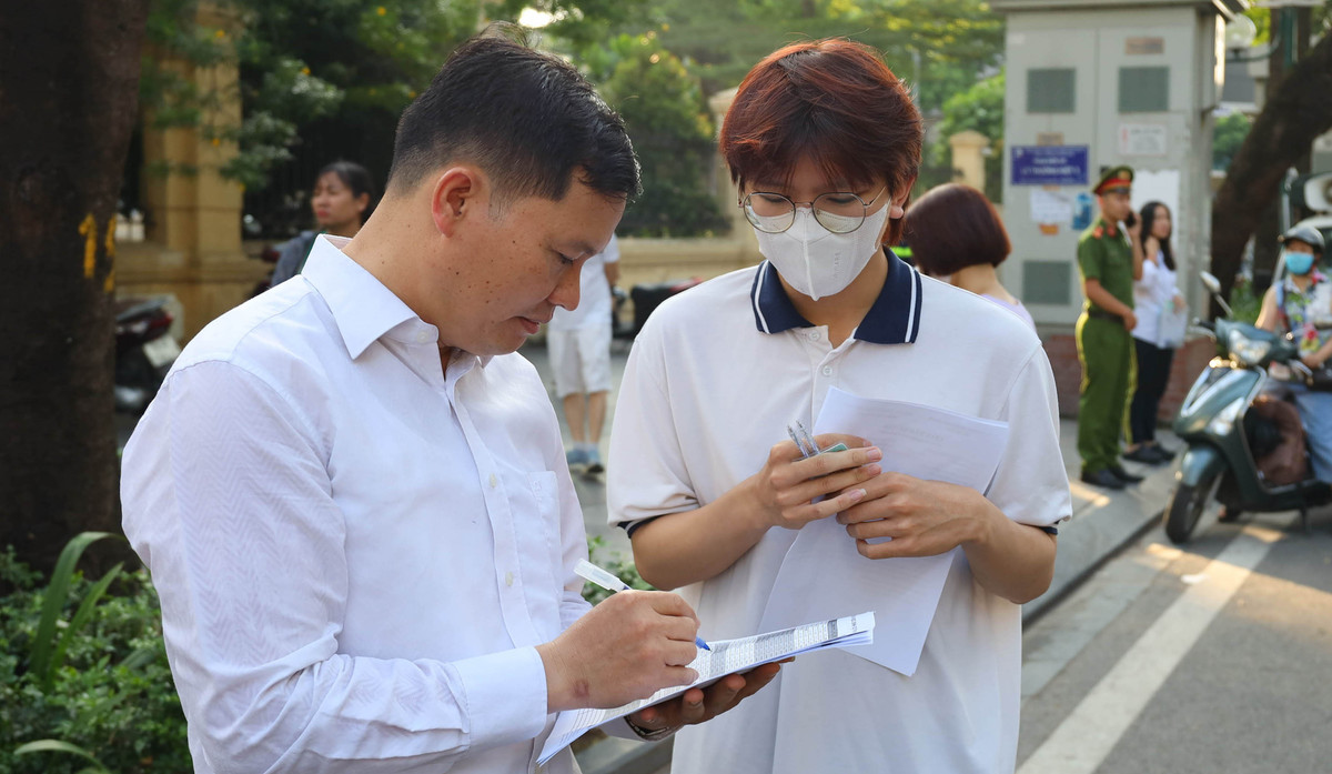 Năm nay, trường THPT Hồng Hà học sinh dự thi tại 5 điểm khác nhau trên địa bàn thành phố. Tại mỗi điểm thi, nhà trường đều cử giáo viên túc trực, đồng hành cùng học sinh từ sáng sớm. Riêng điểm thi trường THCS Trưng Vương, nơi có số lượng thí sinh đông nhất, ngoài thầy Đạt còn có thêm một giáo viên khác cùng hỗ trợ.