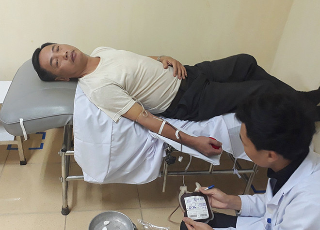 Thầy vượt hơn 30 km từ huyện Lộc Hà tới Bệnh viện Đa khoa Hà Tĩnh, hiến 250 ml máu O Rh- cho chị Hường.