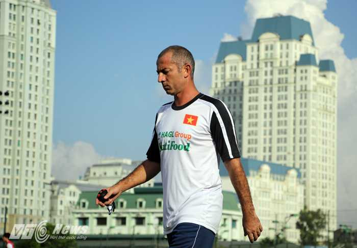| Thầy Giôm trong buổi tập chiều 10/9 (Ảnh: Hà Thành) |