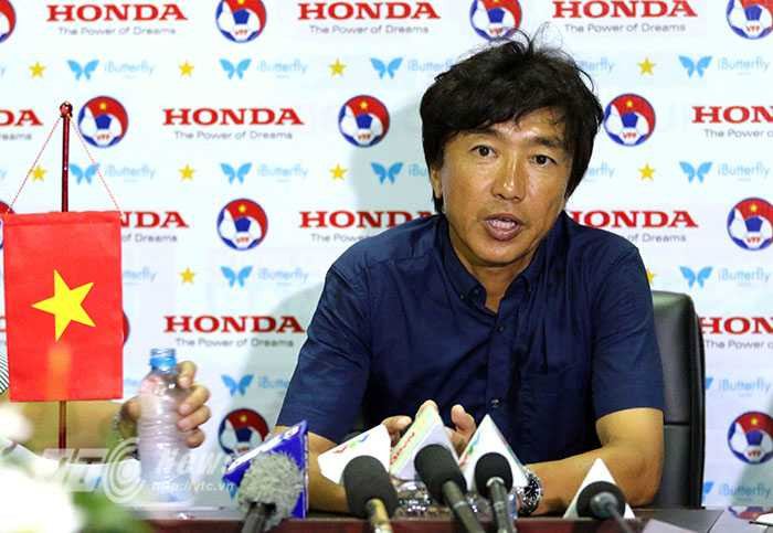 | Thầy Nhật trong buổi họp báo trận giao hữu với Hong Kong (Ảnh: Quang Minh) |