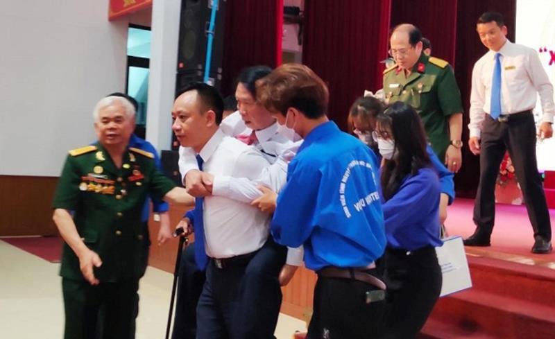 Mặc dù nhà trường đã bố trí nhiều sinh viên để hỗ trợ các cựu chiến binh. Tuy nhiên, ở lượt từ sân khấu xuống, thấy các em sinh viên khá lúng túng vì không có kinh nghiệm, trong khi, việc này đối với tôi lại khá đơn giản, nên tôi cõng bác xuống luôn”.