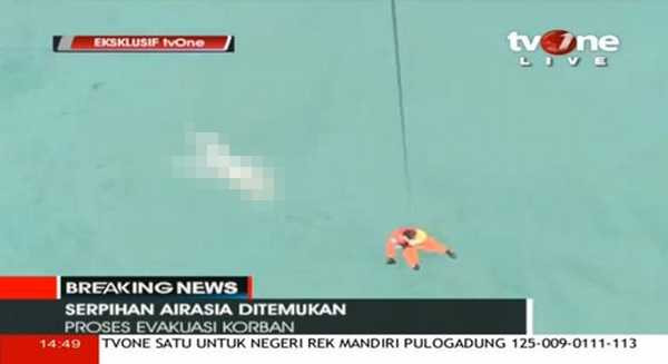 Truyền thông Indonesia cũng chiếu trên TV những hình ảnh này. Reuters nói thêm rằng thi thể trôi dạt trên biển đã bị trương lên, nhưng hiện Indonesia chưa xác nhận đây là nạn nhân trên QZ8501.