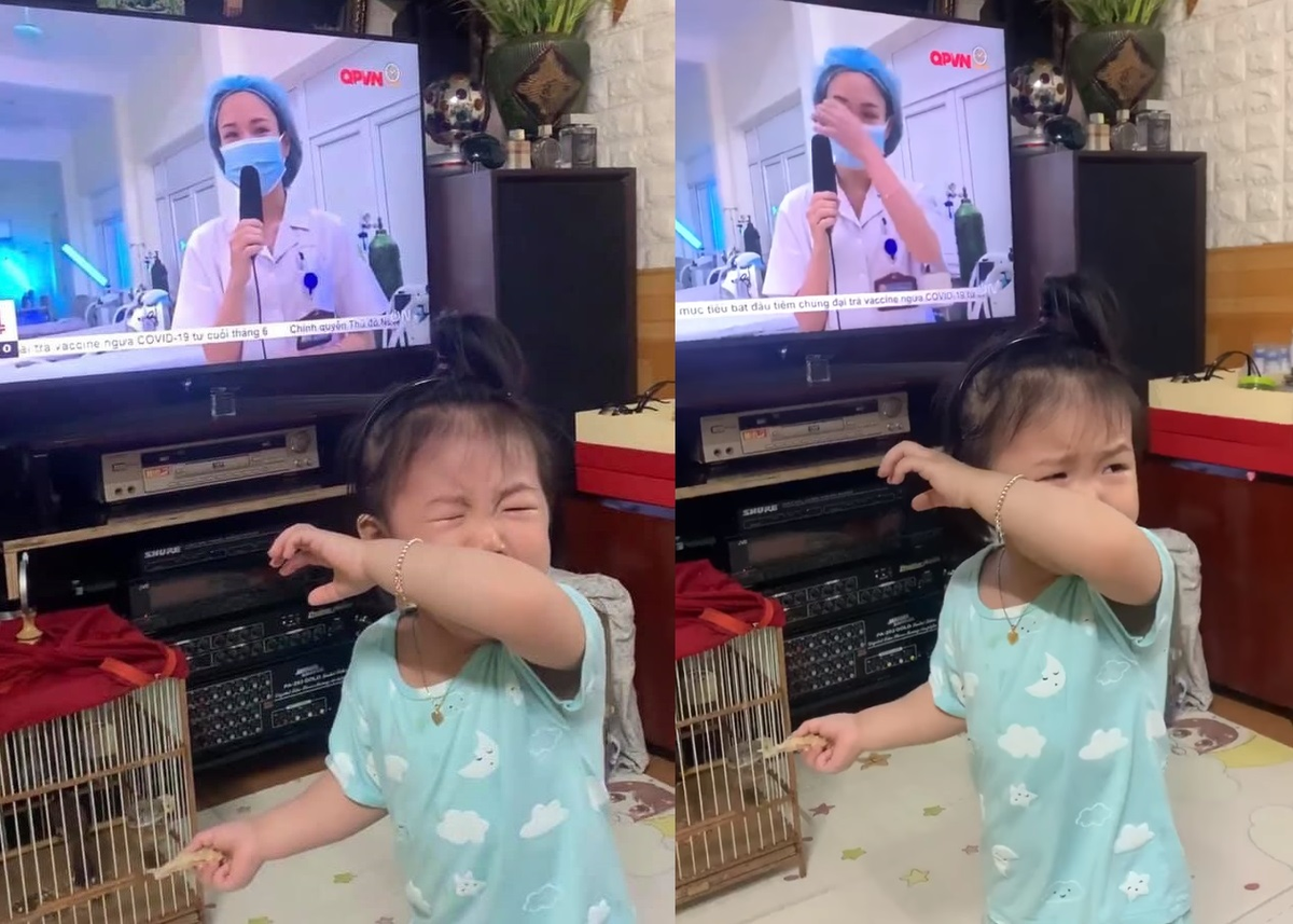 Chồng tôi kể, cả nhà đang ngồi ăn cơm, thấy giọng tôi trên tivi, bé vội chạy ra nhìn mẹ, òa khóc nức nở, không ngờ mẹ đeo khẩu trang mà nó vẫn nhận ra.
