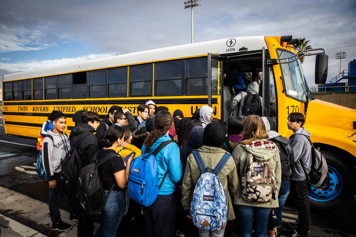 Một chiếc xe bus điện trường học ở Sacramento, California, Mỹ. (Ảnh: NYT)