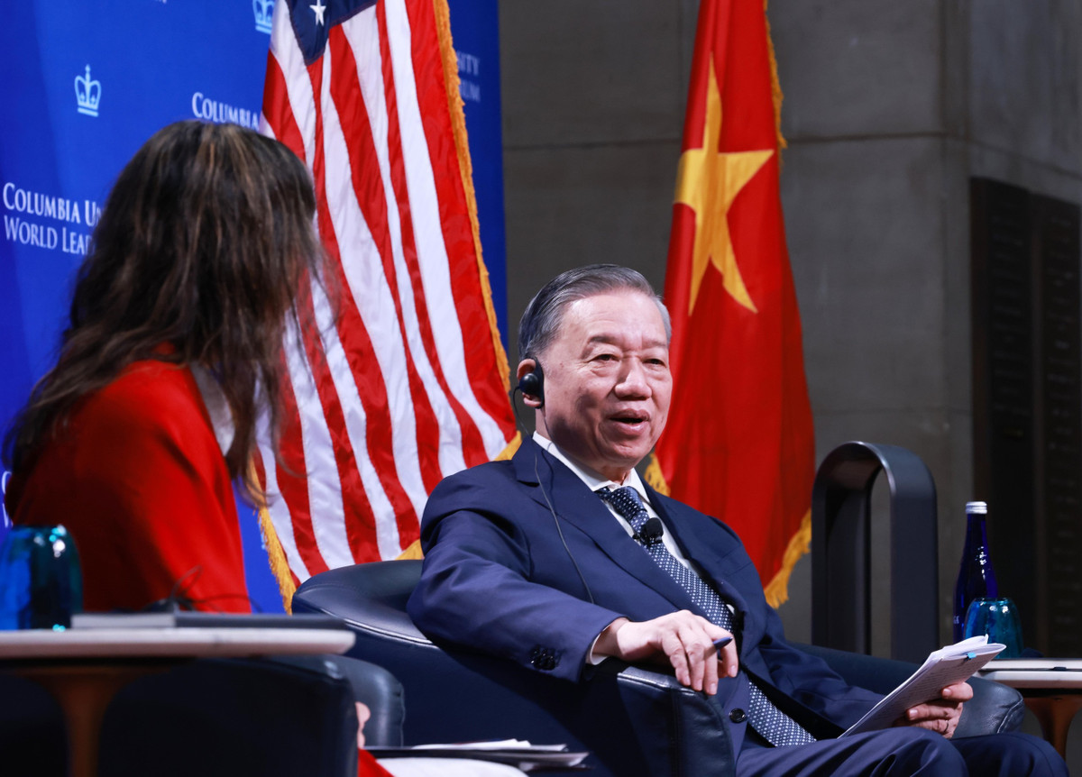 Tổng Bí thư, Chủ tịch nước Tô Lâm tại đại học Columbia, Hoa Kỳ (Ảnh: TTXVN)