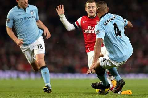 Trong một tình huống Jack Wilshere dẫn bóng ở trung lộ, đội trưởng Vincent Kompany của Man City đã nhoài người cản phá bằng một cú tắc bóng. Sự truy cản cực kỳ quyết liệt của trung vệ người Bỉ khiến ngôi sao trẻ của Arsenal bị hất tung người lên trên không, trước khi rơi xuống đất.